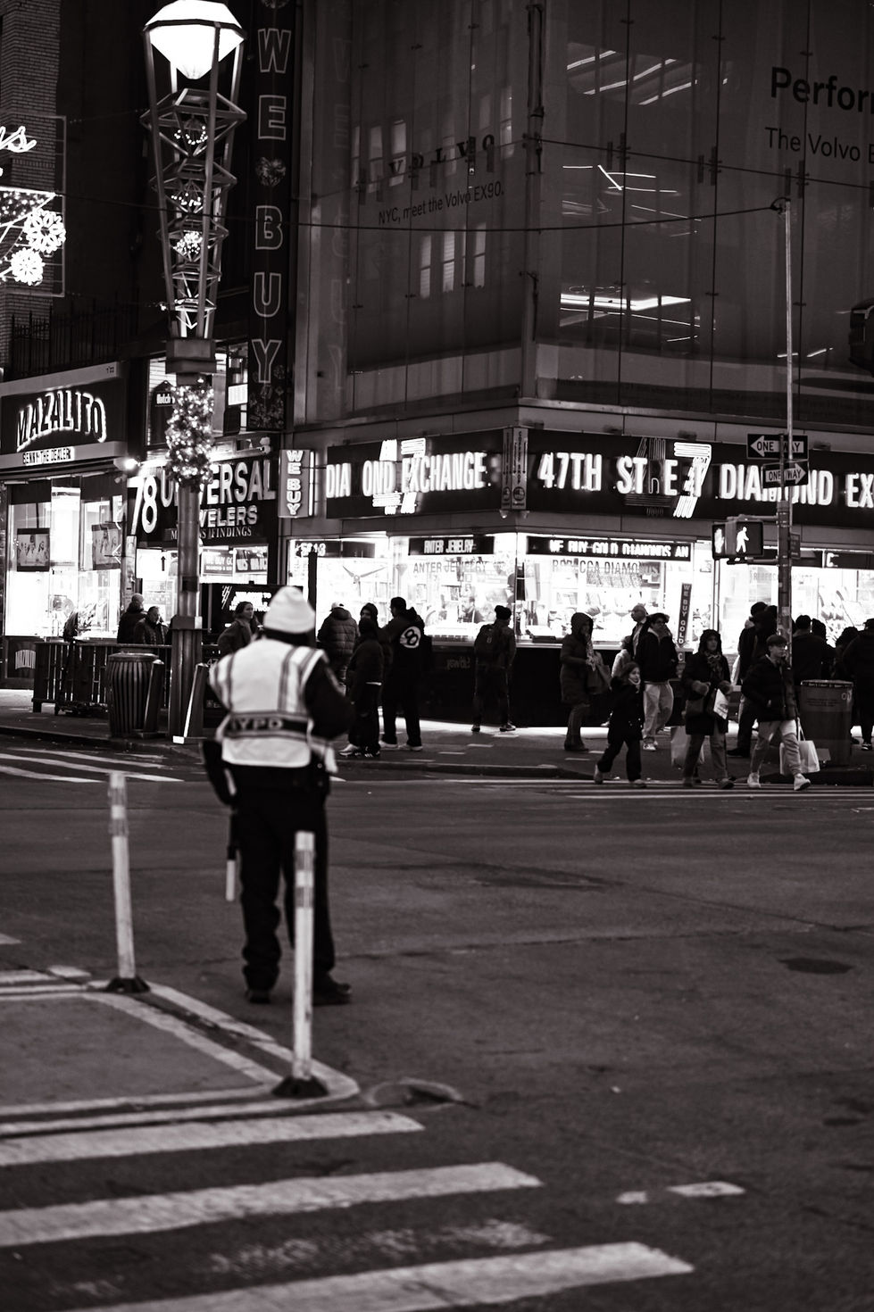 A collection of urban street scenes capturing the vibrant energy of 47th street from a candid perspective